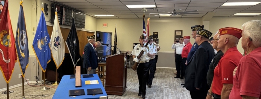 Feature photo above shows Michael Ricci as Post Commander of VFW Post 7721 (behind the podium) and leading the procession is Right Men’s Club member Captain Jack Fulmer.